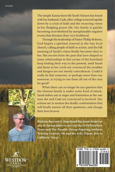 The simple Kansas farm life Sarah Hanson has found with her husband, Cade, after college is turned upside down by a crisis of faith and the recurring vision in her fledgling prayer life. Her family is quickly becoming overwhelmed by unexplainable negative events that threaten their very livelihood. Through the leadership of Pastor Phillip Roberts, God begins a spiritual renewal in the tiny local church, calling people of faith to action, and the full meaning of Sarah’s vision finally becomes clear to her. But secrets from the past that have shaped so many relationships in this corner of the heartland keep finding their way to the present, until Sarah and those in her circle are convinced the troubles and dangers are not merely coincidences. Could it really be that someone, or perhaps more than one someone, is trying to run them all out of the area for good? When there can no longer be any question that the Hanson family is under some kind of attack, Sarah lashes out in anger and frustration at the one man she and Cade are convinced is involved. Her actions set in motion the deadly confrontation that will finally answer all their questions, and change their lives forever.