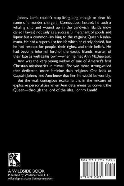 Johnny Lamb couldn't stop living long enough to clear his name of a murder charge in Connecticut. Instead, he took a whaling ship and wound up in the Sandwich Islands (now called Hawaii) not only as a successful merchant of goods and liquor but a common-law king to the reigning Queen Kaahumanu. He had a superb lust for life which he rarely denied, but he had respect for people, their rights, and their beliefs. He had become informal lord of the exotic Islands, master of their fate as well as his own-when he met Ann Mathewson.Ann was the very young widow of one of America's first Christian missionaries in Hawaii. She was more strong-willed than dedicated, more feminine than religious. One look at Captain Johnny and Ann knew that her life would be worldly.But the real, contagious excitement is in the mixture of explosive personalities when Ann determines to convert the Queen-through the lord of the isles, Johnny Lamb!