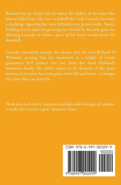 Richard has no choice but to marry the widow of the man who almost killed him. His vow to bebuff the lovely Lady Lucinda becomes a challenge. Ignoring her now fatherless son proves fuitle. Surely, bedding her to slake his growing lust should be his only goal, for allowing Lucinda to claim a piece of his heart would prove his downfall. Lucinda reluctantly accepts the decree that she wed Richard of Wilmont, praying that his reputation as a knight of strength and honor guarantees he'll protect her son from her dead husband's notorious family. She didn't expect to be desirous of the quiet warrior, or to yearn for a true place in his life and heart - to hunger for a love that can never be.