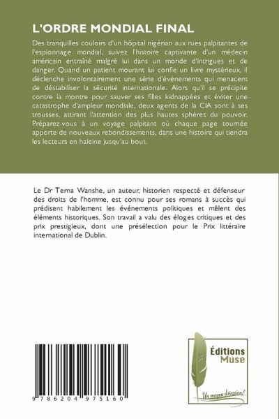 Des tranquilles couloirs d'un hôpital nigérian aux rues palpitantes de l'espionnage mondial, suivez l'histoire captivante d'un médecin américain entraîné malgré lui dans un monde d'intrigues et de danger. Quand un patient mourant lui confie un livre mystérieux, il déclenche involontairement une série d'événements qui menacent de déstabiliser la sécurité internationale. Alors qu'il se précipite contre la montre pour sauver ses filles kidnappées et éviter une catastrophe d'ampleur mondiale, deux agents de la CIA sont à ses trousses, attirant l'attention des plus hautes sphères du pouvoir. Préparez-vous à un voyage palpitant où chaque page tournée apporte de nouveaux rebondissements, dans une histoire qui tiendra les lecteurs en haleine jusqu'au bout.