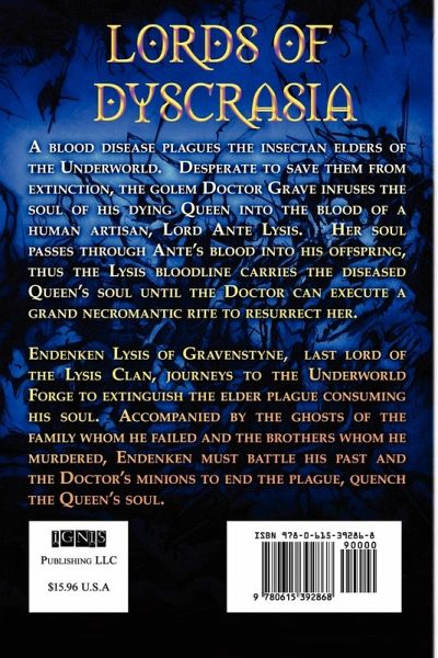 A blood disease plagues the insectan elders of the Underworld. Desperate to save them from extinction, the golem Doctor Grave infuses the soul of his dying Queen into the blood of a human artisan, Lord Ante Lysis. Her soul passes through Ante's blood into his offspring, thus the Lysis bloodline carries the diseased Queen's soul until the Doctor can execute a grand necromantic rite to resurrect her. Endenken Lysis of Gravenstyne, last lord of his Clan, journeys to the Underworld Forge to extinguish the elder plague consuming his soul. Accompanied by the ghosts of the family whom he failed and the brothers whom he murdered, Endenken must battle his past and the Doctor's minions to end the plague, quench the Queen's soul.