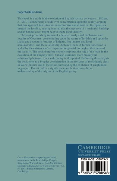 This book is a study in the evolution of English society between c. 1180 and c. 1280. The argument proceeds by means of a detailed analysis of the honour and locality of Coventry, concentrating upon the nature of lordship and upon the social and economic fortunes of knights, free tenants and local administrators, and the relationships between them. A further dimension is added by the existence of an important seignorial borough at the centre of the locality. The book therefore not only explores the role of the town in the evolution of the knightly class, but also examines more broadly the relationship between town and country in this period. Following this analysis the book turns to a broader consideration of the fortunes of the knightly class in the Warwickshire region and to the issues surrounding the evolution of knighthood in general.