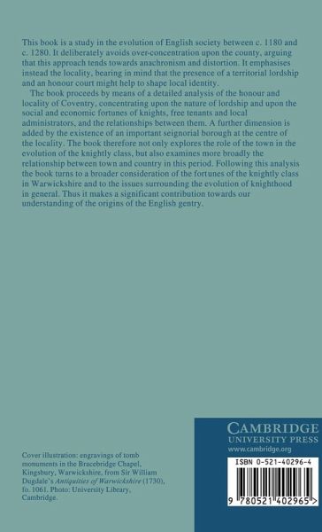 This book is a study in the evolution of English society between c. 1180 and c. 1280. The argument proceeds by means of a detailed analysis of the honour and locality of Coventry, concentrating upon the nature of lordship and upon the social and economic fortunes of knights, free tenants and local administrators, and the relationships between them. A further dimension is added by the existence of an important seignorial borough at the centre of the locality. The book therefore not only explores the role of the town in the evolution of the knightly class, but also examines more broadly the relationship between town and country in this period. Following this analysis the book turns to a broader consideration of the fortunes of the knightly class in the Warwickshire region and to the issues surrounding the evolution of knighthood in general.