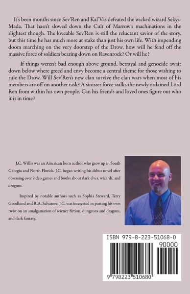 It's been months since Sev'Ren and Kal'Vas defeated the wicked wizard Sekys-Mada. That hasn't slowed down the Cult of Marrow's machinations in the slightest though. The loveable Sev'Ren is still the reluctant savior of the story, but this time he has much more at stake than just his own life. With impending doom marching on the very doorstep of the Drow, how will he fend off the massive force of soldiers bearing down on Ravenrock? Or will he? If things weren't bad enough above ground, betrayal and genocide await down below where greed and envy become a central theme for those wishing to rule the Drow. Will Sev'Ren's new clan survive the clan wars when most of his members are off on another task? A sinister force stalks the newly ordained Lord Ren from within his own people. Can his friends and loved ones figure out who it is in time?
