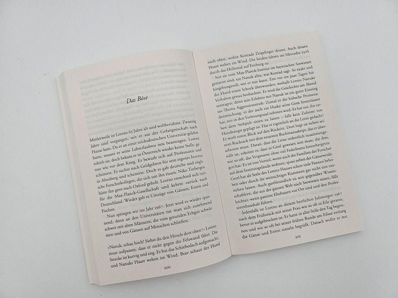 Konrad Lorenz begründete die Tierpsychologie, wurde als Verhaltensforscher berühmt und erhielt 1973 den Nobelpreis. Ilona Jerger erfindet eine Erzählerin, die mit seinen Büchern aufgewachsen ist und Biologin wurde. Je mehr sie erfährt, desto größer wird ihre Faszination. Sie erzählt ein Leben, in dem es um die Liebe zu den Tieren geht, von der Graugans Martina bis zu den Bibern. Um Familie und Karriere und das Überleben, sowohl der Arten als auch der Menschheit. Ein großer Zeitroman, in dem die Errungenschaften und Abgründe des 20. Jahrhunderts aufscheinen.