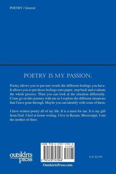 Poetry allows you to put into words the different feelings you have. It allows you to put those feelings onto to paper, step back and evaluate the whole process. Then you can look at the situation differently. Come go on this journey with me as I explore the different situations that I have gone through. Maybe you can identify with some of them.