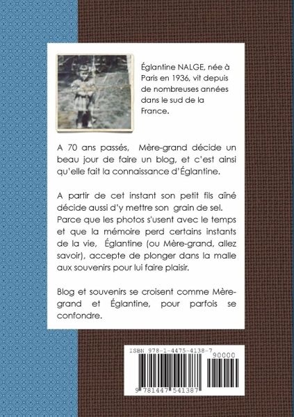 Un petit-fils qui a une foi sans réserve en sa mamie pour écrire un livre...oui mais lequel? Elle se fera la "main" entre blog et souvenirs, avec émotion mais aussi avec humour et surtout, surtout avant que la mémoire ne s'efface. Un chemin de vie, un blog , la rencontre entre Mère-grand et Églantine...et un petit fils qui écoute comme il écoutait avec dévotion, lorsqu'il était petit, les histoires que sa mamie racontait...Il faut dire qu'elle avait une grande imagination. Va -t-elle s'en servir en ouvrant la malle aux souvenirs ?