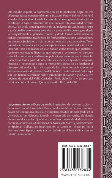 Este estudio explora la representación de la población negra en tres diferentes textos correspondientes a Ecuador, Perú y Bolivia (Alto Perú a finales del periodo colonial). La naturaleza heterogénea de estos textos constituye la base y dirección de este trabajo; esta diversidad permite observar un tejido textual que extiende las imágenes de la población negra a través de diferentes formas textuales y a través de diferentes siglos: desde la conquista hasta el periodo colonial, y desde formas cortas como las cédulas y ordenanzas reales hasta las formas híbridas como las relaciones, los procesos judiciales y más tarde las novelas y otras narrativas. Tanto las ordenanzas reales y los procesos judiciales - considerados textos no literarios - son analizados en este trabajo como textos que guardan y sostienen estrategias literarias que apoyan y construyen el discurso colonial y describen a las diferentes poblaciones de forma casi inalterable. Cada texto forma parte de una retórica específica (jurídica, religiosa, histórica y literaria) pero sigue la misma función básica de fortalecer el discurso colonial y fijar la imagen de las diferentes poblaciones en diferentes espacios de generación del discurso. Los textos analizados aquí son una temprana relación sobre Esmeraldas (Ecuador, siglo XVI), tres poemas de Juan del Valle Caviedes (Perú, siglo XVII) y un proceso criminal contra el mulato Quitacapas (Alto Perú, siglo XIX).