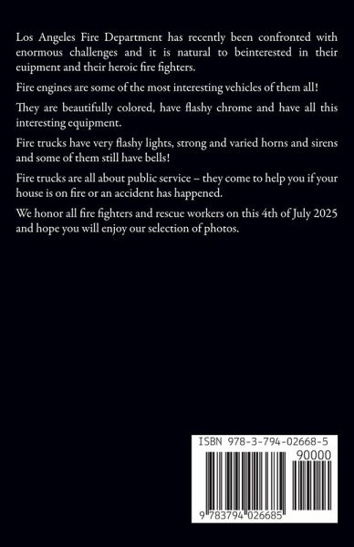 Los Angeles Fire Department has recently been confronted with enormous challenges and it is natural to be interested in their equipment and their heroic fire fighters. Fire engines are some of the most interesting vehicles of them all! They are beautifully colored, have flashy chrome and have all this interesting equipment. Fire trucks have very flashy lights, strong and varied horns and sirens and some of them still have bells! Fire trucks are all about public service - they come to help you if your house is on fire or an accident has happened. We honor all fire fighters and rescue workers on this 4th of July 2025 and hope you will enjoy our selection of photos.