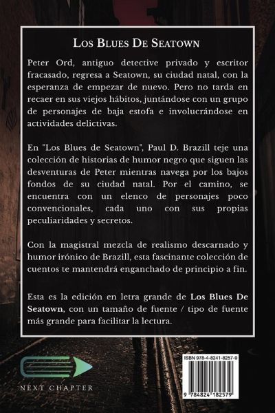 Peter Ord, antiguo detective privado y escritor fracasado, regresa a Seatown, su ciudad natal, con la esperanza de empezar de nuevo. Pero no tarda en recaer en sus viejos hábitos, juntándose con un grupo de personajes de baja estofa e involucrándose en actividades delictivas. En "Los Blues de Seatown", Paul D. Brazill teje una colección de historias de humor negro que siguen las desventuras de Peter mientras navega por los bajos fondos de su ciudad natal. Por el camino, se encuentra con un elenco de personajes poco convencionales, cada uno con sus propias peculiaridades y secretos. Con la magistral mezcla de realismo descarnado y humor irónico de Brazill, esta fascinante colección de cuentos te mantendrá enganchado de principio a fin. Esta es la edición en letra grande de Los Blues De Seatown, con un tamaño de fuente / tipo de fuente más grande para facilitar la lectura.