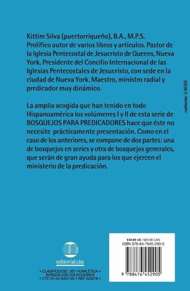 M¿¿s de ochocientos bosquejos, entre los 5 vol¿¿menes, sobre textos b¿¿blicos seleccionados y bien desarrollados por el profesor Silva, del Instituto B¿¿blico de Nueva York, quien comenta: ¿¿Muchos creyentes se reunen en grupos para recibir un serm¿¿n enlatado, medio cocinado, lleno de palabras y vacio de mensaje. No se puede seguir adormeciendo a los creyentes con la m¿¿sica, los cantos, himnos y coros; la predicaci¿¿n debe de ser viva y exponer las doctrinas de la Biblia, teniendo un principio y un desarrollo l¿¿gico y homil¿¿tico hasta el final.¿¿