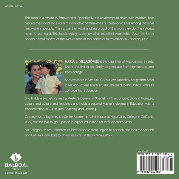 This book is a tribute to farmworkers. Specifically, it is an attempt to share with children from around the world the excellent work ethic of farmworkers. Farmworkers are among the most hardworking people. They enjoy their work and are proud of the work they do. Their stories need to be heard. This book highlights the joy of an excellent work ethic. Also, this book honors a small aspect of the lives of tens of thousands of farmworkers in California, USA.