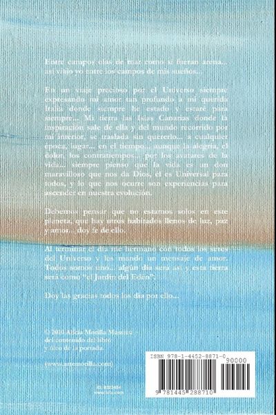 Entre campos olas de mar como si fueran arena... así viajo yo entre los campos de mis sueños... En un viaje precioso por el Universo siempre expresando mi amor tan profundo a mi querida Italia donde siempre he estado y estaré para siempre... Mi tierra las Islas Canarias donde la inspiración sale de ella y del mundo recorrido por mi interior, se traslada sin quererlo... a cualquier época, lugar... en el tiempo... aunque la alegría, el dolor, los contratiempos... por los avatares de la vida... siempre pienso que la vida es un don maravilloso que nos da Dios, él es Universal para todos,y lo que nos ocurre son experiencias para ascender en nuestra evolución. Debemos pensar que no estamos solos en este planeta, que hay otros habitados llenos de luz, paz y amor... doy fe de ello. Al terminar el día me hermano con todos los seres del Universo y les mando un mensaje de amor. Todos somos uno... algún día será así y esta tierra será como "el Jardín del Edén".