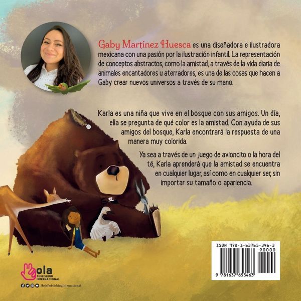 Karla es una niña que vive en el bosque con sus amigos. Un día, ella se pregunta de qué color es la amistad. Con ayuda de sus amigos del bosque, Karla encontrará la respuesta de una manera muy colorida. Ya sea a través de un juego de avioncito o la hora del té, Karla aprenderá que la amistad se encuentra en cualquier lugar, así como en cualquier ser, sin importar su tamaño o apariencia.