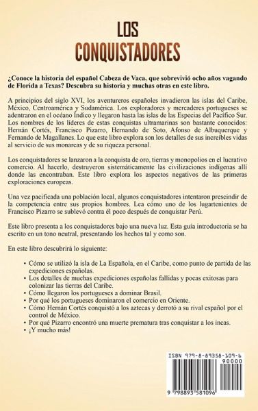 ¿Conoce la historia del español Cabeza de Vaca, que sobrevivió ocho años vagando de Florida a Texas? Descubra su historia y muchas otras en este libro. A principios del siglo XVI, los aventureros españoles invadieron las islas del Caribe, México, Centroamérica y Sudamérica. Los exploradores y mercaderes portugueses se adentraron en el océano Índico y llegaron hasta las islas de las Especias del Pacífico Sur. Los nombres de los líderes de estas conquistas ultramarinas son bastante conocidos: Hernán Cortés, Francisco Pizarro, Hernando de Soto, Afonso de Albuquerque y Fernando de Magallanes. Lo que este libro explora son los detalles de sus increíbles vidas al servicio de sus monarcas y de su riqueza personal. Los conquistadores se lanzaron a la conquista de oro, tierras y monopolios en el lucrativo comercio. Al hacerlo, destruyeron sistemáticamente las civilizaciones indígenas allí donde las encontraban. Este libro explora los aspectos negativos de las primeras exploraciones europeas. Una vez pacificada una población local, algunos conquistadores intentaron prescindir de la competencia entre sus propios hombres. Lea cómo uno de los lugartenientes de Francisco Pizarro se sublevó contra él poco después de conquistar Perú. Este libro presenta a los conquistadores bajo una nueva luz. Esta guía introductoria se ha escrito en un tono neutral, presentando los hechos tal y como son. En este libro descubrirá lo siguiente: Cómo se utilizó la isla de La Española, en el Caribe, como punto de partida de las expediciones españolas. Los detalles de muchas expediciones españolas fallidas y pocas exitosas para colonizar las tierras del Caribe. Cómo llegaron los portugueses a dominar Brasil. Por qué los portugueses dominaron el comercio en Oriente. Cómo Hernán Cortés conquistó a los aztecas y derrotó a su rival español por el control de México. Por qué Pizarro encontró una muerte prematura tras conquistar a los incas. ¡Y mucho más!