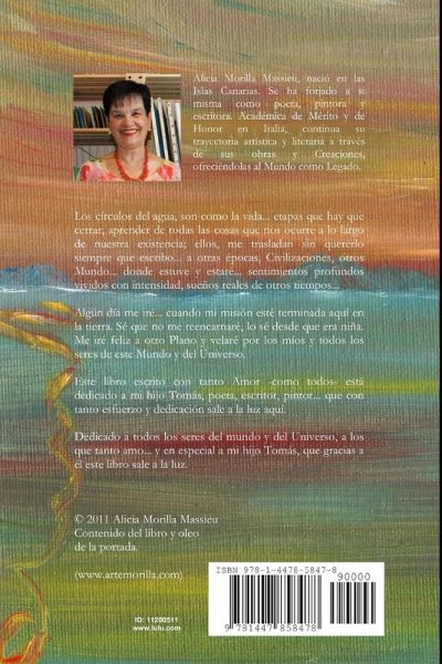Los círculos del agua, son como la vida... etapas que hay que cerrar, aprender de todas las cosas que nos ocurre a lo largo de nuestra existencia; ellos, me trasladan sin quererlo siempre que escribo... a otras épocas, Civilizaciones, otros Mundo... donde estuve y estaré... sentimientos profundos vividos con intensidad, sueños reales de otros tiempos... Algún día me iré... cuando mi misión esté terminada aquí en la tierra. Sé que no me reencarnaré, lo sé desde que era niña. Me iré feliz a otro Plano y velaré por los míos y todos los seres de este Mundo y del Universo. Este libro escrito con tanto Amor -como todos- está dedicado a mi hijo Tomás, poeta, escritor, pintor... que con tanto esfuerzo y dedicación sale a la luz aquí. WWW.ARTEMORILLA.COM