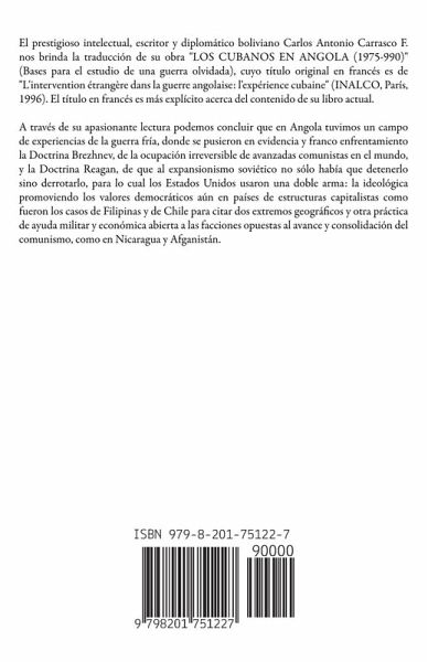El prestigioso intelectual, escritor y diplomático boliviano Carlos Antonio Carrasco F. nos brinda la traducción de su obra "LOS CUBANOS EN ANGOLA (1975-990)" (Bases para el estudio de una guerra olvidada), cuyo título original en francés es de "L'intervention étrangère dans la guerre angolaise: l'expérience cubaine" (INALCO, París, 1996). El título en francés es más explícito acerca del contenido de su libro actual. A través de su apasionante lectura podemos concluir que en Angola tuvimos un campo de experiencias de la guerra fría, donde se pusieron en evidencia y franco enfrentamiento la Doctrina Brezhnev, de la ocupación irreversible de avanzadas comunistas en el mundo, y la Doctrina Reagan, de que al expansionismo soviético no sólo había que detenerlo sino derrotarlo, para lo cual los Estados Unidos usaron una doble arma: la ideológica promoviendo los valores democráticos aún en países de estructuras capitalistas como fueron los casos de Filipinas y de Chile para citar dos extremos geográficos y otra práctica de ayuda militar y económica abierta a las facciones opuestas al avance y consolidación del comunismo, como en Nicaragua y Afganistán.