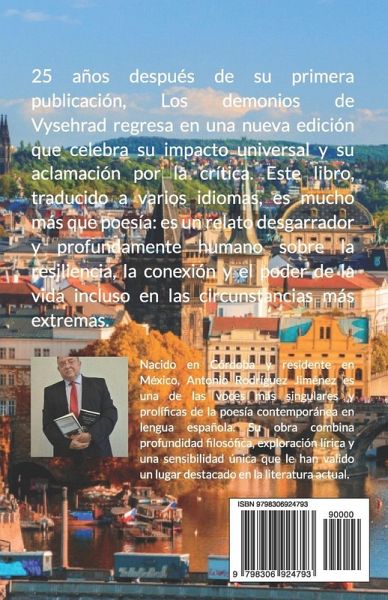 Descubre la obra maestra poética que ha marcado generaciones 25 años después de su primera publicación, Los demonios de Vysehrad regresa en una nueva edición que celebra su impacto universal y su aclamación por la crítica. Este libro, traducido a varios idiomas, es mucho más que poesía: es un relato desgarrador y profundamente humano sobre la resiliencia, la conexión y el poder de la vida incluso en las circunstancias más extremas. En un hospital de Praga, un hombre inmovilizado, que solo puede mover su párpado, transforma su tragedia en un acto de comunicación sublime, relatando su historia de supervivencia, amor y reflexión a través de una poesía de altísima calidad lírica y originalidad. Su viaje emocional, estructurado como si fuera una novela, te transportará a lo más profundo del alma humana. Esta obra, que ya ha conmovido a miles de lectores en todo el mundo, vuelve ahora con fuerza renovada. Si amas la literatura que desafía los límites de la forma y el contenido, este libro es para ti. Consíguelo ahora y déjate llevar por una experiencia literaria única. Antonio Rodríguez Jiménez: una voz imprescindible de la poesía contemporánea. Nacido en Córdoba y residente en México, Antonio Rodríguez Jiménez es una de las voces más singulares y prolíficas de la poesía contemporánea en lengua española. Su obra combina profundidad filosófica, exploración lírica y una sensibilidad única que le han valido un lugar destacado en la literatura actual. Entre sus libros más reconocidos se encuentran: Vértigo de la infancia, El sueño de los cuerpos, El fabricante de hielo, El rostro mentiroso, ente otros. Ha sido galardonado con premios de renombre como el Atlántida, González de Lama, Ciudad de Valencia, Antonio Gala, y Mariano Roldán, entre otros. Rodríguez Jiménez no solo ha enriquecido la poesía contemporánea con su obra, sino que también ha dejado un legado como profesor universitario, crítico literario y periodista cultural. Su estilo, descrito como visionario y épico, es capaz de configurar universos poéticos que oscilan entre lo real y lo onírico, invitando al lector a un viaje fascinante por la condición humana. Adentrarse en su poesía es descubrir una literatura apasionada, vital y absolutamente única.