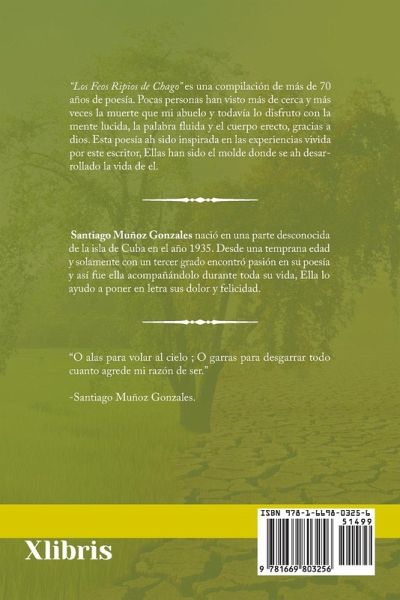 "Los Feos Ripios de Chago" es una compilación de más de 70 años de poesía. Pocas personas han visto más de cerca y más veces la muerte que mi abuelo y todavía lo disfruto con la mente lucida, la palabra fluida y el cuerpo erecto, gracias a dios. Esta poesía ah sido inspirada en las experiencias vivida por este escritor, Ellas han sido el molde donde se ah desarrollado la vida de el.