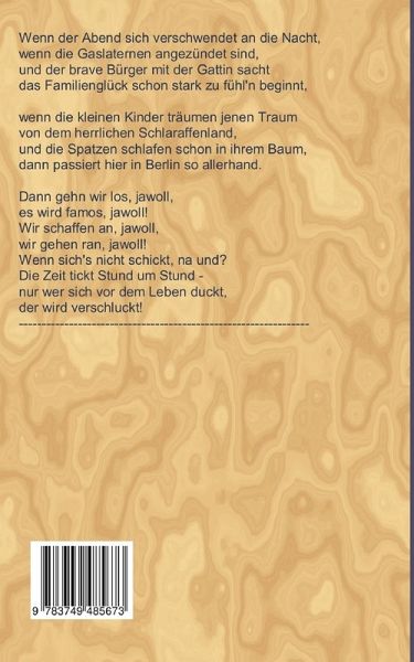 Los geht's, Puppe!Die 'Puppe' ist Hertha Dietz. Sie wächst in Berlin auf - Koppenstraße nähe Schlesischer Bahnhof. Tiefstes Ur-Berlin! Der erste Weltkrieg ist vorbei. Die 'Goldenen Zwanziger'!Frühreif und verzogen gerät Hertha in den Dunstkreis von Tingeltangel, Zuhälter und Varieté. Emma, ihre Mutter, schickt sie, um sie zu schützen, auf unbestimmte Zeit nach Chemnitz zu ihrer Schwester Ella. Hertha verliebt sich dort in Ellas Sohn Willy. Willy verliebt sich in Hertha. Und sie lieben sich, bis der Tod sie scheidet. Willy stirbt für Volk und Vaterland an der Ostfront.Hertha lebt in Berlin ein glamouröses Leben, das ihr ein reicher Bauunternehmer, der als Staatssekretär für den Bau der Autobahn verantwortlich ist, ermöglicht. In Herthas Salon verkehren viele Prominente des Dritten Reiches. Der Zufall will es, dass zuerst Herthas Jugendfreundin, die Jüdin ist, und dann auch noch ihr Ex-Mann, der auch Jude ist, bei ihr Zuflucht vor der Gestapo suchen. Drei Jahre versteckt Hertha diebeiden Juden in ihrer Villa.