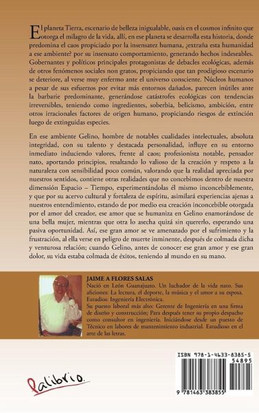 Sinopsis de Los Hilos del Destino El planeta Tierra, escenario de belleza inigualable, oasis en el cosmos infinito que otorga el milagro de la vida, allí, en ese planeta se desarrolla esta historia, donde predomina el caos propiciado por la insensatez humana, ¿extraña esta humanidad a ese ambiente? por su insensato comportamiento, generando hechos indeseables. Gobernantes y políticos principales protagonistas de debacles ecológicas, además de otros fenómenos sociales non gratos, propiciando que tan prodigioso escenario se deteriore, al verse muy enfermo ante el universo consciente. Núcleos humanos a pesar de sus esfuerzos por evitar más entornos dañados, parecen inútiles ante la barbarie predominante, generándose catástrofes ecológicas con tendencias irreversibles, teniendo como ingredientes, soberbia, belicismo, ambición, entre otros irracionales factores de origen humano, propiciando riesgos de extinción luego de extinguidas especies. En ese ambiente Gelino, hombre de notables cualidades intelectuales, absoluta integridad, con su talento y destacada personalidad, influye en su entorno inmediato induciendo valores, frente al caos; profesionista notable, pensador nato, aportando principios, resaltando lo valioso de la creación y respeto a la naturaleza con sensibilidad poco común, valorando que la realidad apreciada por nuestros sentidos, contiene otras realidades que no concebimos dentro de nuestra dimensión Espacio ? Tiempo, experimentán- dolas él mismo inconcebiblemente, y que por su acervo cultural y fortaleza de espíritu, asimilará experiencias ajenas a nuestros entendimiento, estando de por medio esa creación inconcebible otorgada por el amor del creador, ese amor que se humaniza en Gelino enamorándose de una bella mujer, mientras que otra lo asecha quizá sin quererlo, esperando una pasiva oportunidad. Así, ese gran amor se ve amenazado por el sufrimiento y la frustración, al ella verse en peligro de muerte inminente, después de colmada dicha y venturosa relación; cuando Gelino, antes de conocer ese gran amor y ese gran dolor, su vida estaba colmada de éxitos, teniendo al mundo en su mano.
