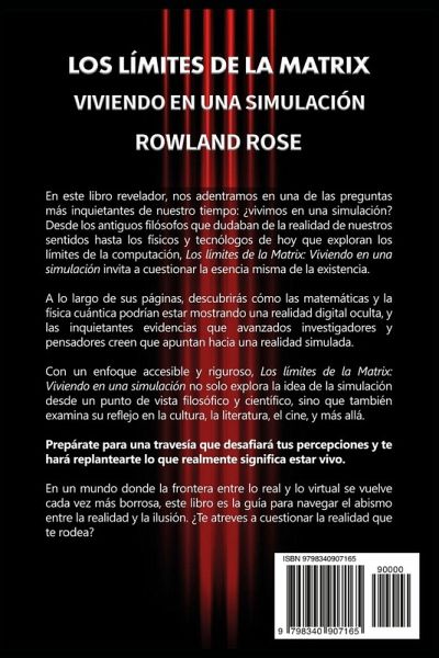¿Estás listo para descubrir la verdad detrás de tu realidad? Descubre el libro que está revolucionando la manera en que entendemos el universo y la conciencia: Los límites de la Matrix: Viviendo en una simulación. ¿Qué pasaría si te dijeran que todo lo que ves, sientes y experimentas es una construcción artificial? Desde los filósofos de la antigua Grecia hasta los pioneros de la tecnología moderna, la idea de que la realidad que percibimos podría ser una simulación ha fascinado y aterrorizado a la humanidad durante siglos y actualmente se vuelve más evidente conforme avanza la comprensión física y matemática del Universo y de la vida. En este libro innovador y profundamente revelador, exploramos las raíces filosóficas, científicas y culturales de la hipótesis de la simulación, desvelando lo que podría ser la verdad más impactante sobre nuestro universo, sobre nuestra vida y sobre nuestra conciencia. A través de una narrativa cautivadora y accesible, descubrirás: * Las teorías científicas más avanzadas, desde la física cuántica hasta la inteligencia artificial, que podrían ser la clave para entender si vivimos en una realidad simulada. * Las conexiones sorprendentes entre mitos antiguos, obras literarias y películas icónicas como Matrix, y cómo reflejan la sospecha de que todo es una simulación. * Las implicaciones éticas y morales de un universo simulado: ¿Qué significa el libre albedrío en un mundo programado? ¿Cómo cambia nuestra visión del alma y la espiritualidad? * Las teorías más fascinantes sobre quién o qué podría estar detrás de la simulación, y lo que esto significa para el futuro de la humanidad. Los límites de la Matrix: Viviendo en una simulación, no es solo un libro; es una invitación a cuestionar la realidad misma. Con un enfoque riguroso y audaz, te llevará a reflexionar profundamente sobre la naturaleza del universo y tu lugar en él.