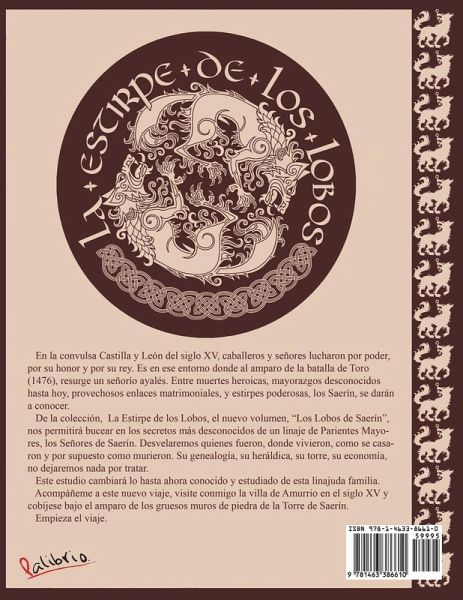 En la convulsa Castilla y León del siglo XV, caballeros y señores lucharon por poder, por su honor y por su rey. Es en ese entorno donde al amparo de la batalla de Toro (1476), resurge un señorío ayalés. Entre muertes heroicas, mayorazgos desconocidos hasta hoy, provechosos enlaces matrimoniales, y estirpes poderosas, los Saerín, se darán a conocer. De la colección, La Estirpe de los Lobos, el nuevo volumen, los lobos de Saerín, nos permitirá bucear en los secretos más desconocidos de un linaje de Parientes Mayores, los Señores de Saerín. Desvelaremos quienes fueron, donde vivieron, como se casaron y por supuesto como murieron. Su genealogía, su heráldica, su torre, su economía, no dejaremos nada por tratar. Este estudio cambiará lo hasta ahora conocido y estudiado de esta linajuda familia. Acompáñeme a este nuevo viaje, visite conmigo la villa de Amurrio en el siglo XV y cobíjese bajo el amparo de los gruesos muros de piedra de la Torre de Saerín. Empieza el viaje.