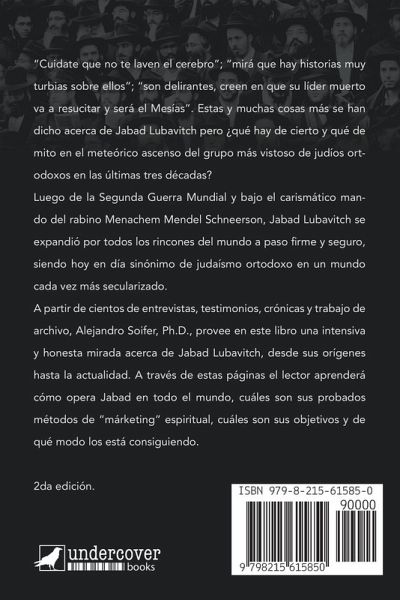 Descubra el enigmático mundo de Jabad Lubavitch -un viaje al corazón de una rama de judíos ortodoxos en rápido crecimiento y explosiva influencia. En Los Lubavitch en la Argentina: ¿Quiénes son los nuevos judíos ortodoxos? ¿Qué buscan? ¿Cómo lo están consiguiendo? Alejandro Soifer, Ph.D., ofrece una crónica periodística que ahonda en el corazón de un movimiento que ha intrigado y desconcertado por partes iguales. A través de una investigación meticulosa y un periodismo incisivo, el autor desentraña las capas de esta dinámica comunidad para revelar las complejidades, motivaciones e impactos que yacen bajo la superficie. En estas páginas descubrirá: Descifrando Jabad Lubavitch: Adéntrese en el corazón de un movimiento que desafía las convenciones. Explore sus orígenes, doctrinas y rápida expansión mundial, al tiempo que encuentra respuestas a preguntas cruciales acerca de Los Lubavitch: ¿Qué impulsa su crecimiento sin precedentes? ¿Qué les motiva? ¿Cómo están logrando sus objetivos mesiánicos? A puertas cerradas: Descubra las capas de secretismo que han envuelto a Jabad Lubavitch. A través de reportajes sobre el terreno, conocerá sus estrategias organizativas, sus métodos de divulgación y la intrincada red de conexiones que sustentan su influencia. Historias de transformación: A través de entrevistas íntimas y relatos personales, sea testigo del profundo impacto de Jabad Lubavitch en las vidas de individuos a los que ha tocado. Descubra historias de empoderamiento, fe e inesperados viajes de autodescubrimiento. Jabad Lubavitch por dentro: ¿Quiénes forman esta rama de judíos ortodoxos en crecimiento explosivo? A partir de un estudio riguroso y cientos de horas de entrevistas individuales con algunas de sus figuras más destacadas, encontrará en estas páginas acceso irrestricto y sin precedentes al funcionamiento interno de Jabad Lubavitch. Centrado en su presencia en Argentina, esta esclarecedora investigación trasciende las fronteras, ofreciendo un convincente estudio de caso que resuena en el mundo entero. 2da edición revisada.