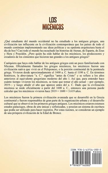 Si desea descubrir la fascinante historia de los micénicos siga leyendo... Los micénicos fueron la primera civilización avanzada que se desarrolló en la Grecia continental y fueron responsables de gran parte de la organización urbana y el desarrollo cultural que se vio en los primeros griegos antiguos. Los micénicos crearon extensos estados palaciegos, obras de arte únicas y sofisticadas, y poseían un sistema de escritura que podía ser usado para hacer registros. Por estas razones, se consideran un ejemplo de una próspera civilización de la Edad de Bronce. Los micénicos fueron responsables de numerosas innovaciones y avances tecnológicos para la región, incluyendo la arquitectura y la estructura militar. Desarrollaron su propia escritura silábica llamada lineal B y también poseían los primeros registros escritos de la lengua griega. Tal vez más sorprendente para el público moderno es que los micénicos adoraban a varias de las deidades famosas en la religión griega mucho antes del desarrollo del panteón olímpico. Aunque los micénicos caerían eventualmente durante lo que se conoce como el colapso de la Edad de Bronce, su civilización sobreviviría adaptándose y transformándose en los antiguos griegos tan bien conocidos en las civilizaciones occidentales. En Los micénicos: Una guía fascinante de la primera civilización avanzada de la antigua Grecia, descubrirá temas como:Organización política y militar Cultura y vida cotidiana Economía y comercio El periodo de las tumbas de cúpula, alrededor de. 1600 - 1450 a. C. El periodo Koiné, alrededor de 1450 - 1250 a. C. El colapso, aprox. 1250 - 1100 a. C. La guerra de Carolina (1369-1389) Los precursores de la religión griega Arte y arquitectura ¡Y mucho, mucho más! ¡Adquiera este libro ahora para aprender más sobre los micénicos!