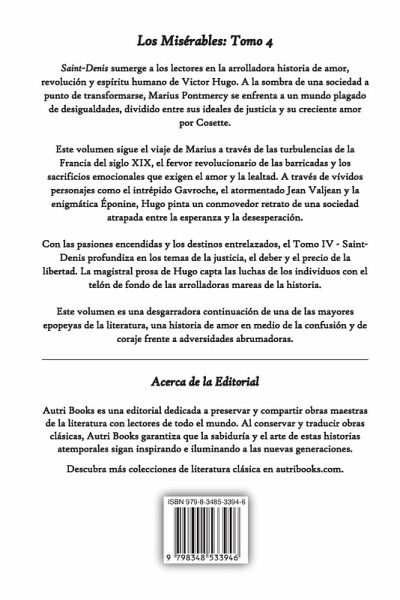 En Los Miserables: Tomo IV, el amor, el sacrificio y la revolución se entrelazan mientras Marius, Cosette y las barricadas de París se enfrentan a las luchas de la justicia y la humanidad.