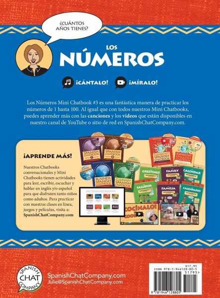 ¿A ti te gustan los números? Vamos a contar de 1 hasta cien. Este libro va con la canción #4 en el disco de Elementary Spanish Chatbook. Los libros del "Chatbook"tiene actividades para leer, escribir, escuchar y hablar en Inglés o español para los niños y los adultos también. SpanishChatCompany.com