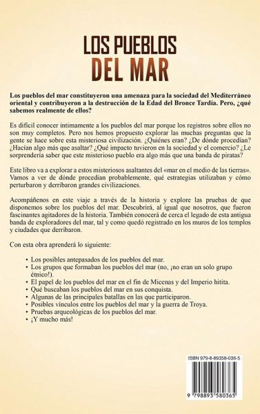 Los pueblos del mar constituyeron una amenaza para la sociedad del Mediterráneo oriental y contribuyeron a la destrucción de la Edad del Bronce Tardía. Pero, ¿qué sabemos realmente de ellos? Es difícil conocer íntimamente a los pueblos del mar porque los registros sobre ellos no son muy completos. Pero nos hemos propuesto explorar las muchas preguntas que la gente se hace sobre esta misteriosa civilización. ¿Quiénes eran? ¿De dónde procedían? ¿Hacían algo más que asaltar? ¿Qué impacto tuvieron en la sociedad y el comercio? ¿Le sorprendería saber que este misterioso pueblo era algo más que una banda de piratas? Este libro va a explorar a estos misteriosos asaltantes del mar en el medio de las tierras. Vamos a ver de dónde procedían probablemente, qué estrategias utilizaban y cómo perturbaron y derribaron grandes civilizaciones. Acompáñenos en este viaje a través de la historia y explore las pruebas de que disponemos sobre los pueblos del mar. Descubrirá, al igual que nosotros, que fueron fascinantes agitadores de la historia. También conocerá de cerca el legado de esta antigua banda de exploradores del mar, tal y como quedó registrado en los muros de los templos y ciudades que derribaron. Con esta obra aprenderá lo siguiente: Los posibles antepasados de los pueblos del mar. Los grupos que formaban los pueblos del mar (no, ¡no eran un solo grupo étnico!). El papel de los pueblos del mar en el fin de Micenas y del Imperio hitita. Qué buscaban los pueblos del mar en sus conquista. Algunas de las principales batallas en las que participaron. Posibles vínculos entre los pueblos del mar y la guerra de Troya. Pruebas arqueológicas de los pueblos del mar. ¡Y mucho más!