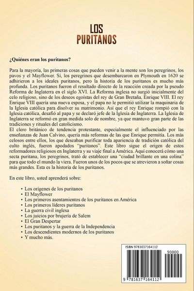 ¿Quiénes eran los puritanos? Para la mayoría, las primeras cosas que pueden venir a la mente son los peregrinos, los pavos y el Mayflower. Sí, los peregrinos que desembarcaron en Plymouth en 1620 se adhirieron a los ideales puritanos, pero la historia de los puritanos es mucho más profunda. Los puritanos fueron el resultado directo de la reacción creada por la pseudo Reforma de Inglaterra en el siglo XVI. La Reforma inglesa no surgió inicialmente del celo religioso, sino de los deseos egoístas del rey de Gran Bretaña, Enrique VIII. El rey Enrique VIII quería una nueva esposa, y el papa no le permitió utilizar la maquinaria de la Iglesia católica para disolver su matrimonio. Así que el rey Enrique rompió con la Iglesia católica, desafió al papa y se declaró jefe de la Iglesia de Inglaterra. La Iglesia de Inglaterra se reformó en gran medida solo de nombre, ya que mantuvo gran parte de las tradiciones y rituales del catolicismo. El clero británico de tendencia protestante, especialmente el influenciado por las enseñanzas de Juan Calvino, quería más reformas de las que Enrique permitía. Los más celosos entre ellos, los que deseaban purificar toda apariencia de tradición católica del culto inglés, fueron apodados "puritanos". Este libro sigue el origen de estos reformadores religiosos en Inglaterra y su viaje final a América. Aquí conocerá cómo una secta puritana, los peregrinos, trató de establecer una "ciudad brillante en una colina" para que todo el mundo la viera. Fueron unos de los pocos que se atrevieron a soñar cosas más grandes. Esta es la historia de los puritanos. En este libro, usted aprenderá sobre:Los orígenes de los puritanos El Mayflower Los primeros asentamientos de los puritanos en América Los primeros líderes puritanos La guerra civil inglesa Los juicios por brujería de Salem El Gran Despertar Los puritanos y la guerra de la Independencia Los descendientes modernos de los puritanos Y mucho más. ¡Adquiera este libro ahora para aprender más sobre los puritanos!