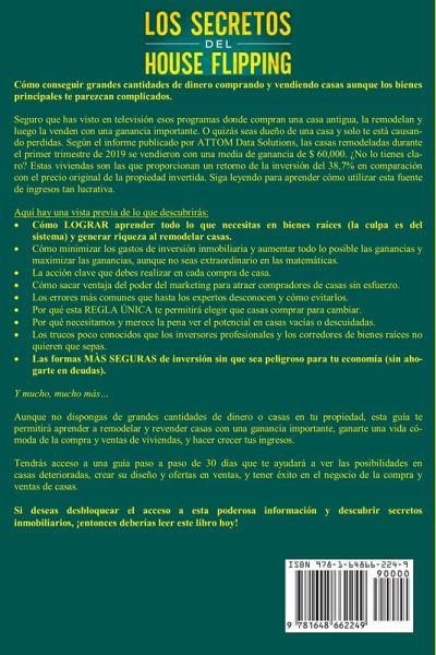 Cómo conseguir grandes cantidades de dinero comprando y vendiendo casas aunque los bienes principales te parezcan complicados... Seguro que has visto en televisión esos programas donde compran una casa antigua, la remodelan y luego la venden con una ganancia importante. O quizás seas dueño de una casa y solo te està causando perdidas. Según el informe publicado por ATTOM Data Solutions, las casas remodeladas durante el primer trimestre de 2019 se vendieron con una media de ganancia de $ 60,000. ¿No lo tienes claro? Estas viviendas son las que proporcionan un retorno de la inversión del 38,7% en comparación con el precio original de la propiedad invertida. Siga leyendo para aprender còmo utilizar esta fuente de ingresos tan lucrativa. Aquí hay una vista previa de lo que descubrirás:Cómo LOGRAR aprender todo lo que necesitas en bienes raíces (la culpa es del sistema) y generar riqueza al remodelar casas. Cómo minimizar los gastos de inversión inmobiliaria y aumentar todo lo posible las ganancias y maximizar las ganancias, aunque no seas extraordinario en las matemáticas. La acción clave que debes realizar en cada compra de casa. Cómo sacar ventaja del poder del marketing para atraer compradores de casas sin esfuerzo. Los errores más comunes que hasta los expertos desconocen y cómo evitarlos. Por qué esta REGLA ÚNICA te permitirá elegir que casas comprar para cambiar. Por qué necesitamos y merece la pena ver el potencial en casas vacías o descuidadas. Los trucos poco conocidos que los inversores profesionales y los corredores de bienes raíces no quieren que sepas. Las formas MÀS SEGURAS de inversión sin que sea peligroso para tu economía (sin ahogarte en deudas). Y mucho, mucho más... Aunque no dispongas de grandes cantidades de dinero o casas en tu propiedad, esta guía te permitirá aprender a remodelar y revender casas con una ganancia importante, ganarte una vida cómoda de la compra y ventas de viviendas, y hacer crecer tus ingresos. Tendrás acceso a una guía paso a paso de 30 días que te ayudará a ver las posibilidades en casas deterioradas, crear su diseño y ofertas en ventas, y tener éxito en el negocio de la compra y ventas de casas. Si deseas desbloquear el acceso a esta poderosa información y descubrir secretos inmobiliarios, ¡entonces deberías leer este libro hoy!