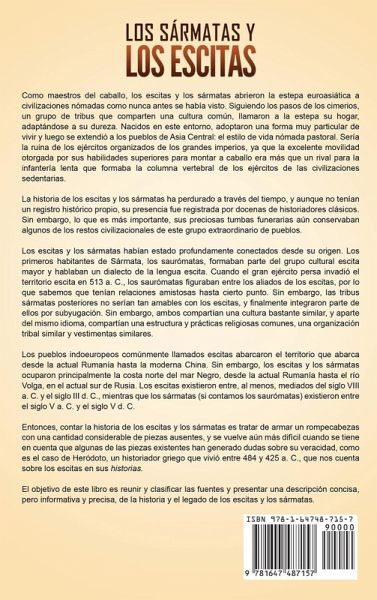 Si desea descubrir la fascinante historia de los sármatas y los escitas, siga leyendo...Como maestros del caballo, los escitas y los sármatas abrieron la estepa euroasiática a civilizaciones nómadas como nunca antes se había visto. Por primera vez, un grupo de tribus que comparten una cultura común llamaron a la estepa su hogar, adaptándose a su crueldad. Nacidos en este entorno, adoptaron una forma muy particular de vivir y luego se extendió a los pueblos de Asia Central: el estilo de vida nómada pastoral. Sería la ruina de los ejércitos organizados de los grandes imperios, ya que la excelente movilidad otorgada por sus habilidades superiores de equitación no era rival en comparación con la infantería lenta y organizada.La historia de los escitas y los sármatas ha perdurado a través de la historia, y aunque no tenían un registro histórico propio, su presencia fue registrada por docenas de historiadores clásicos. Sin embargo, lo que es más importante, sus preciosas tumbas funerarias aún conservaban algunos de los restos civilizacionales de este grupo extraordinario de pueblos.En Los sármatas y los escitas: Una guía fascinante sobre los bárbaros de origen iraní y cómo estas tribus antiguas lucharon contra el Imperio romano, los godos, los hunos y los persas, descubrirá temas como:Los orígenes de los escitas y los sármatas El arte, la cultura y la religión La economía y la sociedad La guerra y la conquista El fin de los escitas y los sármatas ¡Y mucho, mucho más! ¡Obtenga este libro ahora para conocer más sobre Los sármatas y los escitas!
