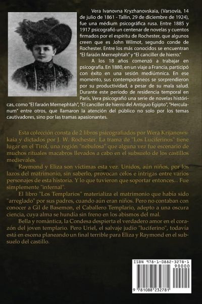 Esta colección consta de 2 libros psicografiados por Wera Krijanowskaia y dictados por J. W. Rochester. La trama de "Los Luciferinos" tiene lugar en el Tirol, una región "nebulosa" que alguna vez fue escenario de muchos rituales macabros llevados a cabo en el subsuelo de los castillos medievales. Raymond y Eliza son víctimas esta vez. Unidos, aún niños, por los lazos del matrimonio, sin saberlo, provocan celos e intrigas entre varios personajes de esta historia. Y lo que tuvieron que soportar entonces... Fue simplemente "infernal". El libro "Los Templarios" materializa el matrimonio que había sido "arreglado" por sus padres, cuando aún eran niños. Pero no contaban con conocer a Gil de Basemon, el Caballero Templario, adepto a una oscura ciencia, cuya alma se hundía sin freno en los abismos del mal. Bella y romántica, la Condesa despierta el verdadero amor en el corazón del joven templario. Pero Uriel, el salvaje judío "luciferino", todavía está en escena planeando un final terrible para Eliza y Raymond en el subsuelo del castillo.