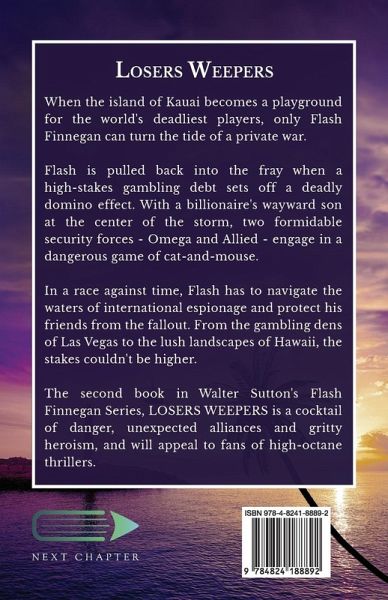 When the island of Kauai becomes a playground for the world's deadliest players, only Flash Finnegan can turn the tide of a private war. Flash is pulled back into the fray when a high-stakes gambling debt sets off a deadly domino effect. With a billionaire's wayward son at the center of the storm, two formidable security forces - Omega and Allied - engage in a dangerous game of cat-and-mouse. In a race against time, Flash has to navigate the waters of international espionage and protect his friends from the fallout. From the gambling dens of Las Vegas to the lush landscapes of Hawaii, the stakes couldn't be higher. The second book in Walter Sutton's Flash Finnegan Series, LOSERS WEEPERS is a cocktail of danger, unexpected alliances and gritty heroism, and will appeal to fans of high-octane thrillers.