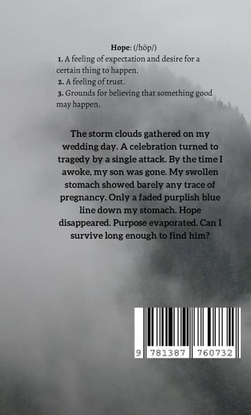 Hope: (/h¿p/) 1. A feeling of expectation and desire for a certain thing to happen. 2. A feeling of trust. 3. Grounds for believing that something good may happen. The storm clouds gathered on my wedding day. A celebration turned to tragedy by a single attack. By the time I awoke, my son was gone. My swollen stomach showed barely any trace of pregnancy. Only a faded purplish blue line down my stomach. Hope disappeared. Purpose evaporated. Can I survive long enough to find him?