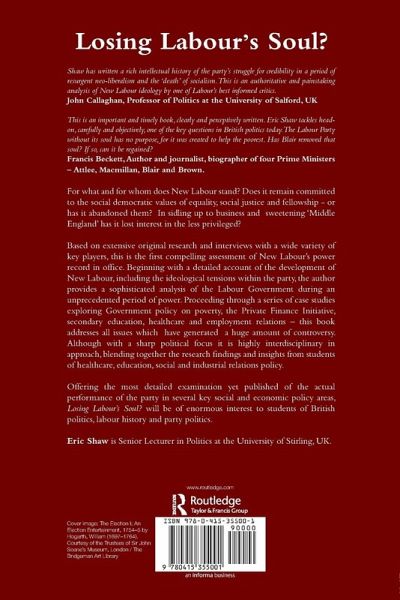 Based on extensive original research and interviews with a wide variety of key players, this is a compelling assessment of the Labour Party in power. Beginning with a detailed account of the development of New Labour, including the ideological tensions within the party, Eric Shaw provides a sophisticated analysis of the Labour Government during an unprecedented period of power. Offering the most detailed examination yet published of the actual performance of the party in several key social and economic policy areas, Losing Labour's Soul? will be of enormous interest to students of British politics, labour history and party politics.