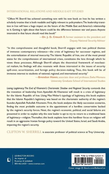 This book analyzes the legitimacy of the Iranian regime finding that it lacks a legal-rational or traditional basis, and is losing the charismatic basis. It assesses that Iran's next Supreme Leader will be forced to adopt an aggressive foreign policy in pursuit of religious legitimacy and nationalist public support.