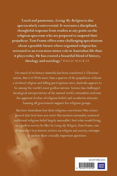 In this challenging and provocative book, Tom Frame, one of Australia's best-known writers on religion and society, examines diminishing theological belief and declining denominational affiliation. He argues that Australia has never been a very religious nation but that few Australians have deliberately rejected belief - most simply can't see why they need to be bothered with religion at all. He contends that vehement campaigning against theistic belief is the product of growing disdain for religious fundamentalism and a vigorous commitment to personal autonomy. Losing My Religion contends that God is certainly not dead but that Australia's religious landscape will continue to change as the battle for hearts, minds and spirits continues. Published on the sesquicentennial of the first release of Charles Darwin's On the Origin of Species (1859), this book will provoke debate about what matters to Australians.