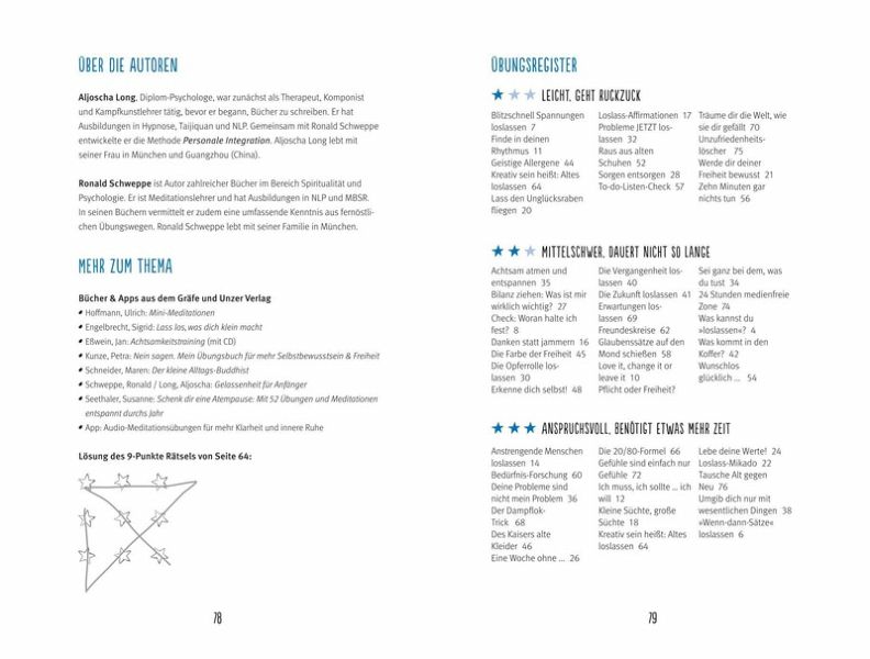 Loslassen ist viel einfacher als Festhalten - mit den richtigen Werkzeugen. Viele Tabellen und Checklisten, in denen die eigenen Erfolge und Gedanken festgehalten werden können, machen dieses Buch zum ganz persönlichen Begleiter für den Weg in ein befreites Leben. Von der ersten Bestandsaufnahme, über intensive Achtsamkeitsmeditationen, bis hin zur "Blitzentspannung" - praktische Alltagsübungen verhelfen zu einem neuen Bewusstsein für die eigenen Wünsche und Bedürfnisse. So lernt man schlechte Gewohnheiten aufzugeben, sich von hohen Erwartungen zu befreien oder von zermürbenden Beziehungen zu lösen, um endlich frei zu werden für Neues.