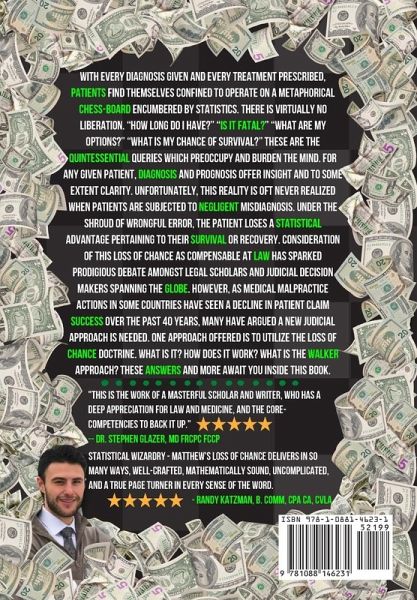 "This is the work of a masterful scholar and writer, who has a deep appreciation for law and medicine, and the core-competencies to back it up. By far, Matthew's account provides a detailed innovative approach that could have a revolutionary impact on the way the judicial system tackles medical malpractice and the loss of chance doctrine." -- Dr. Stephen Glazer, MD FRCPC FCCP. With every diagnosis given and every treatment prescribed, patients find themselves confined to operate on a metaphorical chess-board encumbered by statistics. There is virtually no liberation. "How long do I have?" "Is it fatal?" "What are my options?" "What is my chance of survival?" These are the quintessential queries which preoccupy and burden the mind. For any given patient, diagnosis and prognosis offer insight and to some extent clarity. Unfortunately, this reality is oftnever realized when patients are subjected to negligent misdiagnosis. Under the shroud of wrongful error, the patient loses a statistical advantage pertaining to their survival or recovery. Consideration of this loss of chance as compensable at lawhas sparked prodigious debate amongst legal scholars and judicial decision makers spanning the globe. However, as medical malpractice actions in some countries have seen a decline in patient claim success over the past 40 years, many have argued a new judicial approach is needed. One approach offered is to utilize the loss of chance doctrine. What is it? How does it work? What is the Walker Approach? These answers and more await you inside this book.