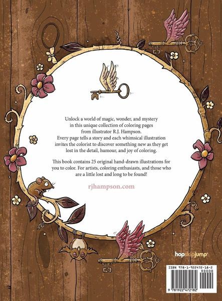 Unlock a world of magic, wonder and mystery! Find hidden treasures as you lose yourself in these carefree coloring pages. This whimsical and enchanting book by illustrator R.J. Hampson features old friends in new predicaments while new friends make their debut. Every illustration is a story which will stir your imagination as you add your own creativity, bringing each page to life. Can you find the key that is hidden on every page? Why you'll love this hardcover book: Pages are Single Sided. Perfect for colored pencils, crayons, or markers. US Letter Page Size (8.5 x 11 inches / 22 x 28cm) 56 pages. 70 pound / 105gsm Paper for a broader range of mediums. 25 Engaging Illustrations For All Skill Levels. Each is a story, hand drawn in pen-and-ink to spark your imagination. Single Set of Illustrations. Every illustration has hidden humorous elements - the more you look the more fun details you will find. Flip Throughs are available on the author's website. Lost & Found is the perfect coloring therapy to invite mindfulness and awaken your imagination. So let your creativity guide you as you explore, discover, and craft a masterpiece uniquely your own. For artists, coloring enthusiasts, and those who are a little lost and long to be found!