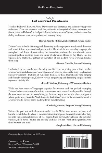 Lost and Found Departments explores the intersections and tensions among many types of loss and, sometimes, recovery-of words, of people, of memories, of literary genres. Ranging from found poetry and monologues, to reimagined forms and poems of loss and recovery, Heather Dubrow's collection challenges readers to see beyond the surface of the everyday. With these witty, intelligent, and humane poems, Dubrow encourages us to see and discover the world around us as more than static or mechanistic. To her, the world is poetry.