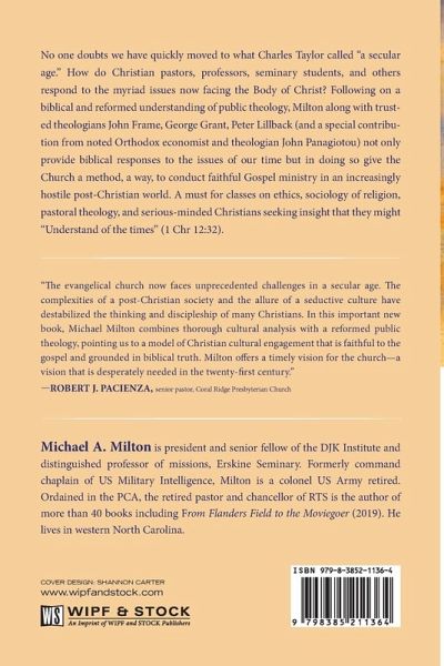No one doubts we have quickly moved to what Charles Taylor called "a secular age." How do Christian pastors, professors, seminary students, and others respond to the myriad issues now facing the Body of Christ? Following on a biblical and reformed understanding of public theology, Milton along with trusted theologians John Frame, George Grant, Peter Lillback (and a special contribution from noted Orthodox economist and theologian John Panagiotou) not only provide biblical responses to the issues of our time but in doing so give the Church a method, a way, to conduct faithful Gospel ministry in an increasingly hostile post-Christian world. A must for classes on ethics, sociology of religion, pastoral theology, and serious-minded Christians seeking insight that they might "Understand of the times" (1 Chr 12:32).
