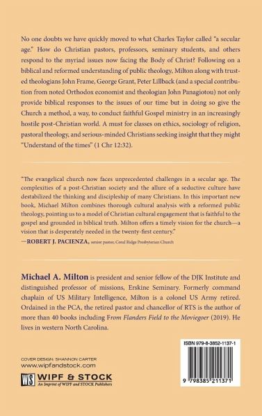 No one doubts we have quickly moved to what Charles Taylor called "a secular age." How do Christian pastors, professors, seminary students, and others respond to the myriad issues now facing the Body of Christ? Following on a biblical and reformed understanding of public theology, Milton along with trusted theologians John Frame, George Grant, Peter Lillback (and a special contribution from noted Orthodox economist and theologian John Panagiotou) not only provide biblical responses to the issues of our time but in doing so give the Church a method, a way, to conduct faithful Gospel ministry in an increasingly hostile post-Christian world. A must for classes on ethics, sociology of religion, pastoral theology, and serious-minded Christians seeking insight that they might "Understand of the times" (1 Chr 12:32).