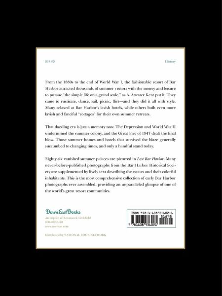 From the 1880s to the end of World War I, the fashionable resort of Bar Harbor attracted thousands of summer visitors with the money and leisure to pursue "the simple life on a grand scale," as A. Atwater Kent put it. They came to rusticate, dance, sail, picnic, flirt--and they did it all with style. Many relaxed at Bar Harbor's lavish hotels, while others built even more lavish and fanciful "cottages" for their own summer retreats. That dazzling era is just a memory now. The Depression and World War II undermined the summer colony, and the Great Fire of 1947 dealt the final blow. Those summer homes and hotels that survived the blaze generally succumbed to changing times, and only a handful stand today. Eighty-six vanished summer palaces are pictured in Lost Bar Harbor. Many never before published photographs from the Bar Harbor Historical Society are supplemented by lively text describing the estates and their colorful inhabitants. It is the most comprehensive collection of early Bar Harbor photographs ever assembled, providing an unparalleled glimpse of one of the world's great resort communities.