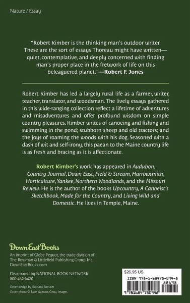 Robert Kimber has led a largely rural life as a farmer, writer, and woodsman. The essays gathered in this wide-ranging collection reflect a lifetime of adventures and misadventures. Kimber writes of canoeing and fishing, stubborn sheep and old tractors, and the joys of roaming the woods with his dog. Seasoned with a dash of wit and self-irony, this paean to the upcountry life is as fresh and bracing as it is affectionate.