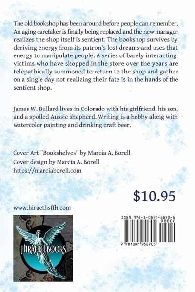 The old bookshop has been around before people can remember. An aging caretaker is finally being replaced and the new manager realizes the shop itself is sentient. The bookshop survives by deriving energy from its patron's lost dreams and uses that energy to manipulate people. A series of barely interacting victims who have shopped in the store over the years are telepathically summoned to return to the shop and gather on a single day not realizing their fate is in the hands of the sentient shop.